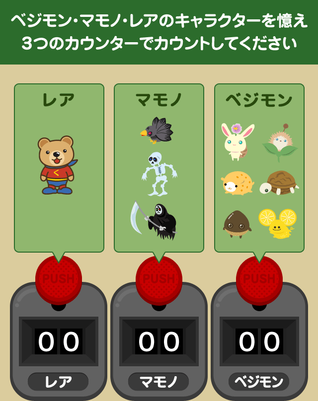 計測器は3つ、キャラカテゴリごとで使い分けます。